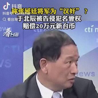 于北辰骂上节目天天信口胡诌,这下惹祸了。他骂台空军前“副司令”张延廷是汉奸,被张延廷告到法院,被判“损害名义”,要赔20万新台币(约人民币4.5万元)。张延廷说,这下于北辰70场节目都白干(原来于北辰一场节目才赚642元人民币),而自己可以拿着这钱吃好喝好了。